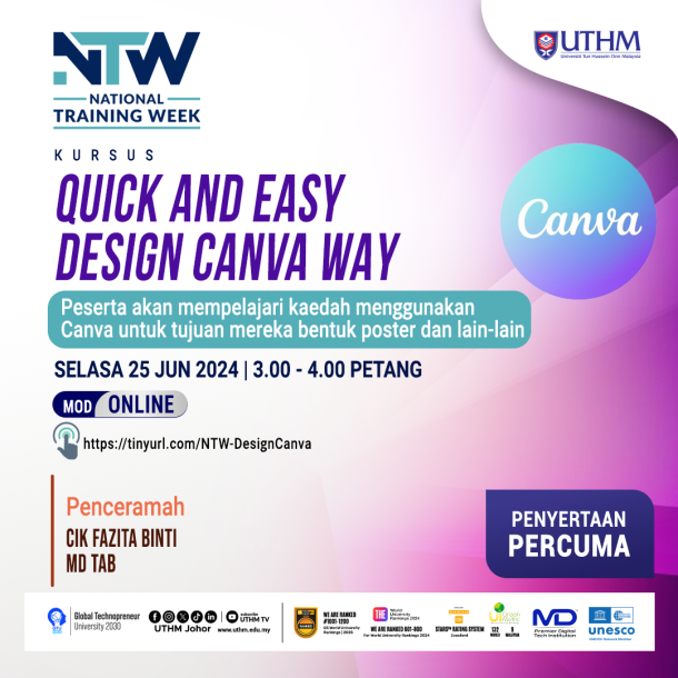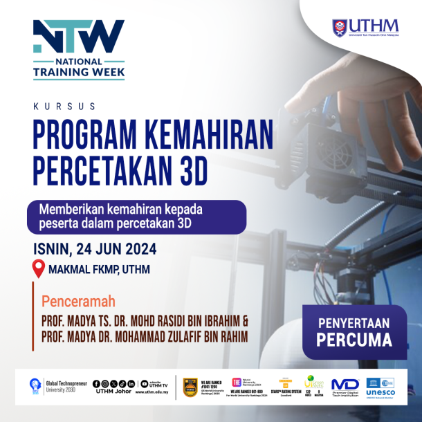 UTHM ANJUR 29 JENIS KURSUS/LATIHAN JANGKA PENDEK SECARA PERCUMA SEMPENA NATIONAL TRAINING WEEK (NTW 2024)